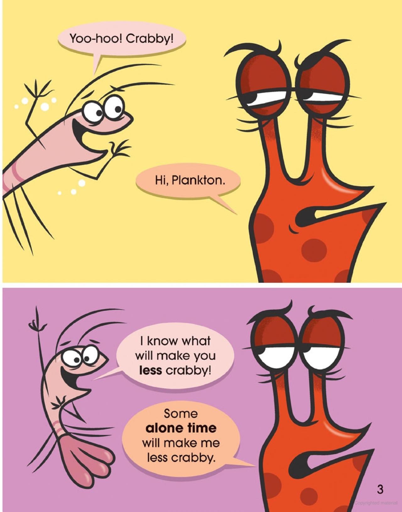 It's just another day in the ocean for Crabby and Plankton -- until Plankton decides it's PARTY TIME! Crabby does not want to go to a party. In four hilarious stories, Crabby uses funny wordplay to distract Plankton from putting a party together. Will Plankton ever get a party? Or will Crabby turn out to be a party pooper?