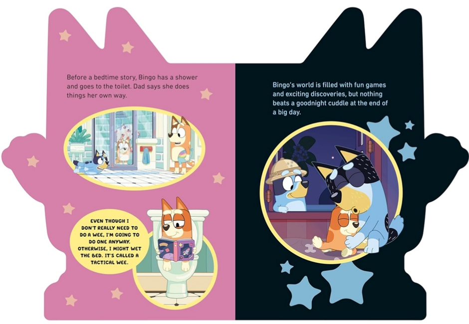 이 책은 Bingo가 좋아하는 야외 놀이와 잠자기 전 하는 일들을 알고 싶은 Bluey 팬들에게 꼭 맞는 책이에요.