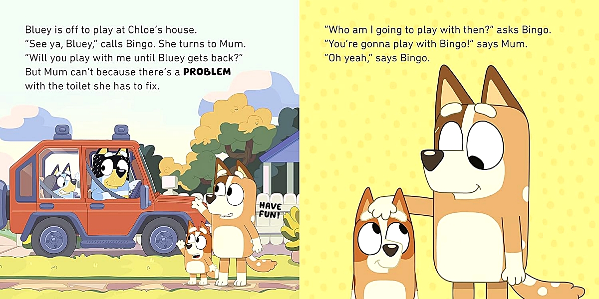 Bluey is off to play at Chloe''s house for the day and mum and dad are busy - can Bingo find a game to play by herself to keep busy? Maybe she needs a problem to solve . . .