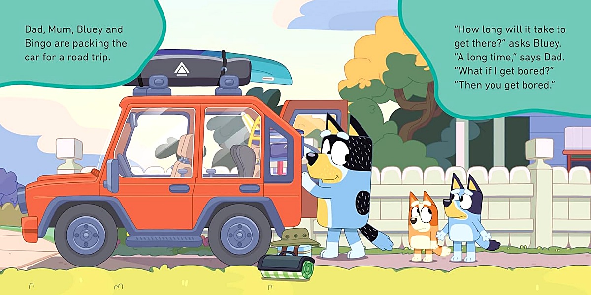 긴 자동차 여행 중, Bluey와 Bingo는 점점 심심해지기 시작하죠.