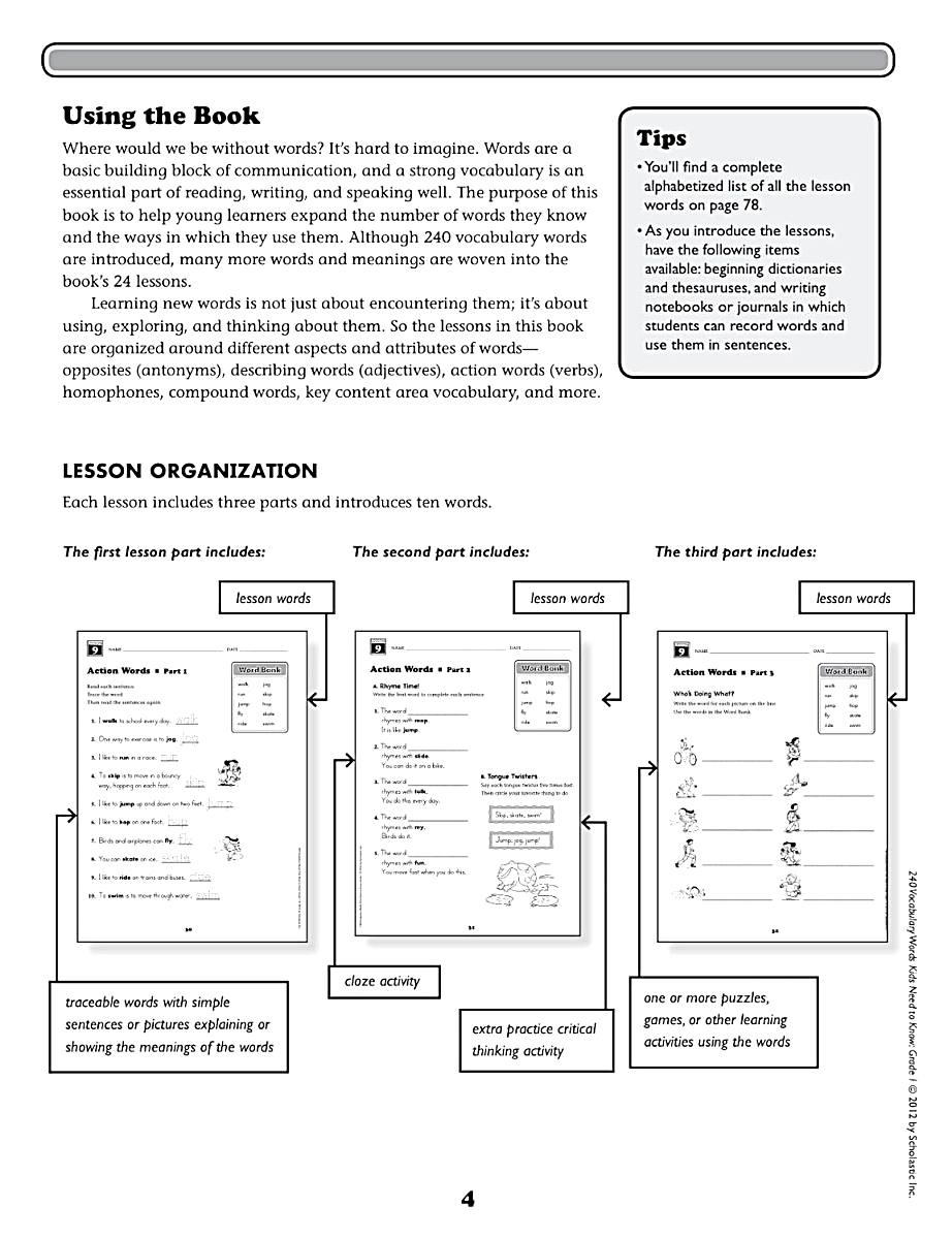 이 책에는 단어 학습을 돕는 3페이지 분량의 레슨 24개가 수록되어 있습니다.